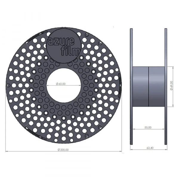 Filament ASA – portocaliu (filament) de la producătorul sloven AzureFilm cu o greutate netă de 1 kg (2,2 lbs) în role cu un diametru exterior de 210 mm, o deschidere interioară de 60 mm și o lățime de 62 mm. Filamentul este sigilat în vid într-o pungă care absoarbe umezeala și permite filamentului să rămână proaspăt și gata de utilizare. Diametrul firului este de 1,75 mm și este produs în mai mult de 30 de nuanțe diferite.