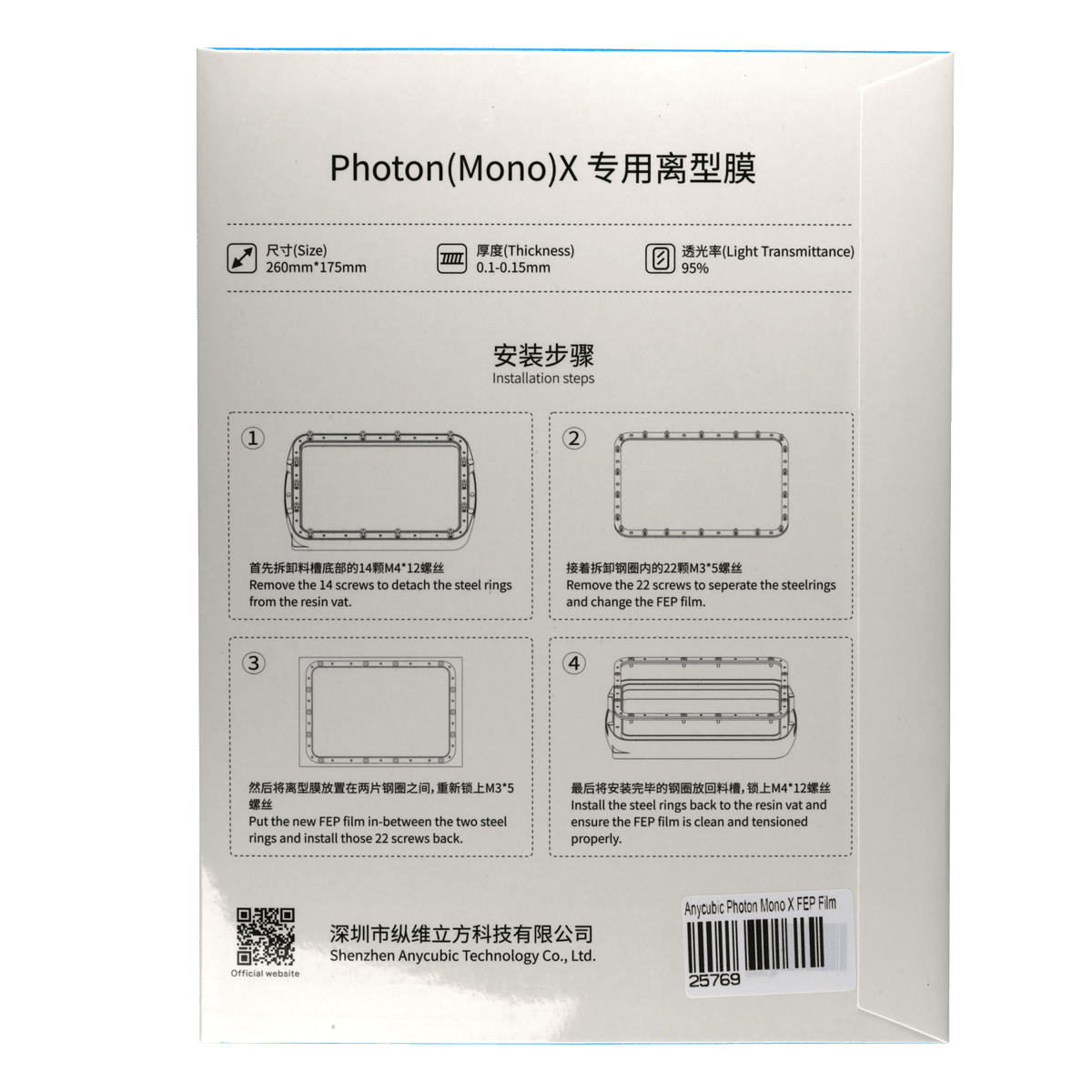 • Folie FEP de înlocuire pentru Anycubic Photon Mono X & Photon Mono X 6K & Photon M3 Plus;