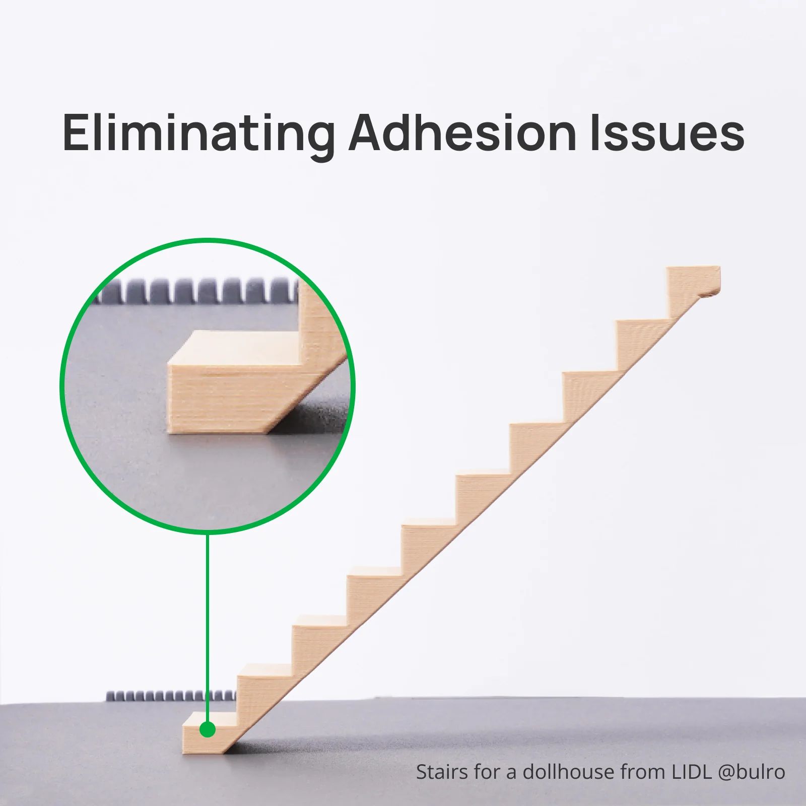 Acoperirea SuperTack asigură o aderență extrem de puternică la filamentele PLA și PETG, chiar și la temperaturi mai scăzute ale platformei de încălzire. Îmbunătățește succesul imprimării prin eliminarea problemelor de aderență, reducerea distorsiunilor la imprimarea obiectelor de mari dimensiuni și funcționarea bună cu suprafețe slab conturate.