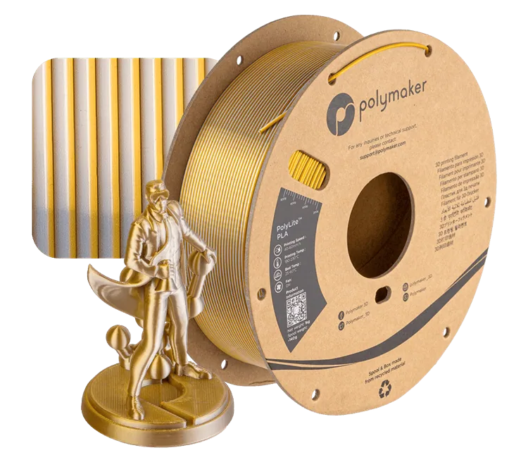 Considerații privind compatibilitatea – PolyLite™ PLA Dual Silk este un filament ușor de imprimat și este compatibil cu o gamă largă de imprimante 3D populare bazate pe extrudare. (În unele cazuri, poate fi necesară încălzirea patului). Cu calitatea sa excelentă de imprimare și efectul vizual remarcabil, filamentul PolyLite™ PLA Dual Silk PLA este alegerea perfectă pentru următorul dvs. proiect remarcabil de imprimare 3D.