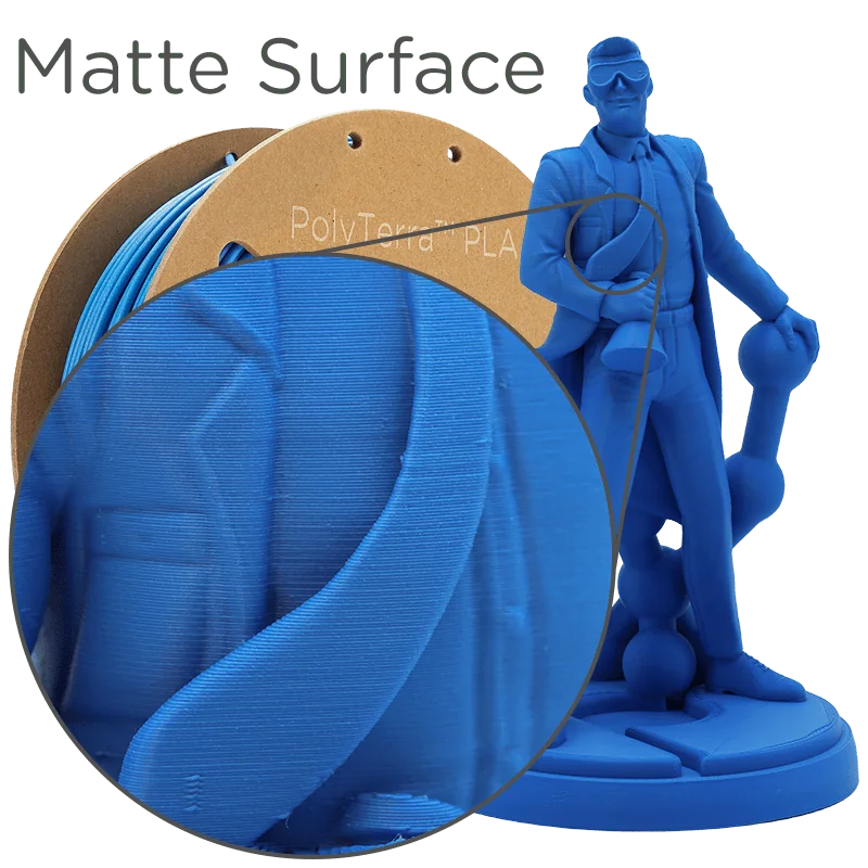 Având o gamă largă de temperaturi de imprimare de 190-230°C, PolyTerra™ . Se poate conecta și funcționa pe orice imprimantă 3D bazată pe extrudare. Finisajul de suprafață al pieselor imprimate 3D este deosebit de mat, ceea ce ascunde liniile de strat, chiar și atunci când se imprimă cu o înălțime mare a stratului.