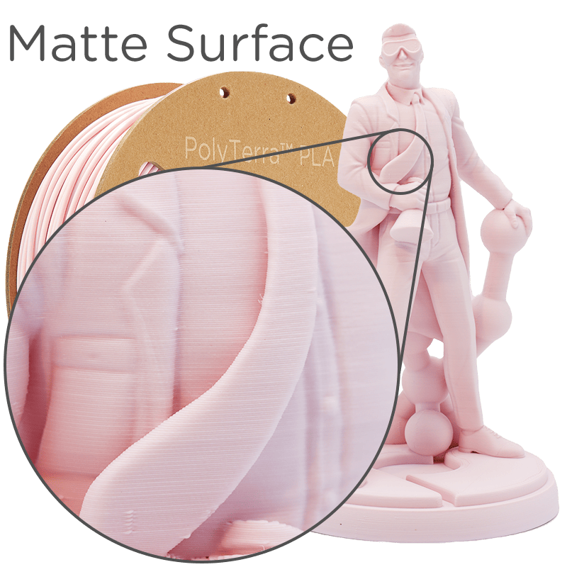 Având o gamă largă de temperaturi de imprimare de 190-230°C, PolyTerra™ . Se poate conecta și funcționa pe orice imprimantă 3D bazată pe extrudare. Finisajul de suprafață al pieselor imprimate 3D este deosebit de mat, ceea ce ascunde liniile de strat, chiar și atunci când se imprimă cu o înălțime mare a stratului.