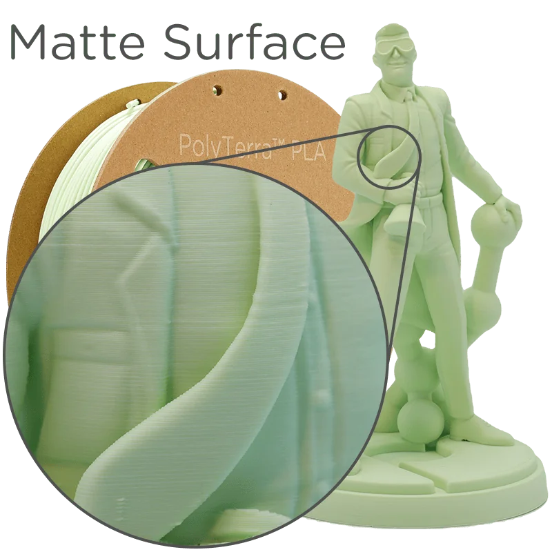 Având o gamă largă de temperaturi de imprimare de 190-230°C, PolyTerra™ . Se poate conecta și funcționa pe orice imprimantă 3D bazată pe extrudare. Finisajul de suprafață al pieselor imprimate 3D este deosebit de mat, ceea ce ascunde liniile de strat, chiar și atunci când se imprimă cu o înălțime mare a stratului.
