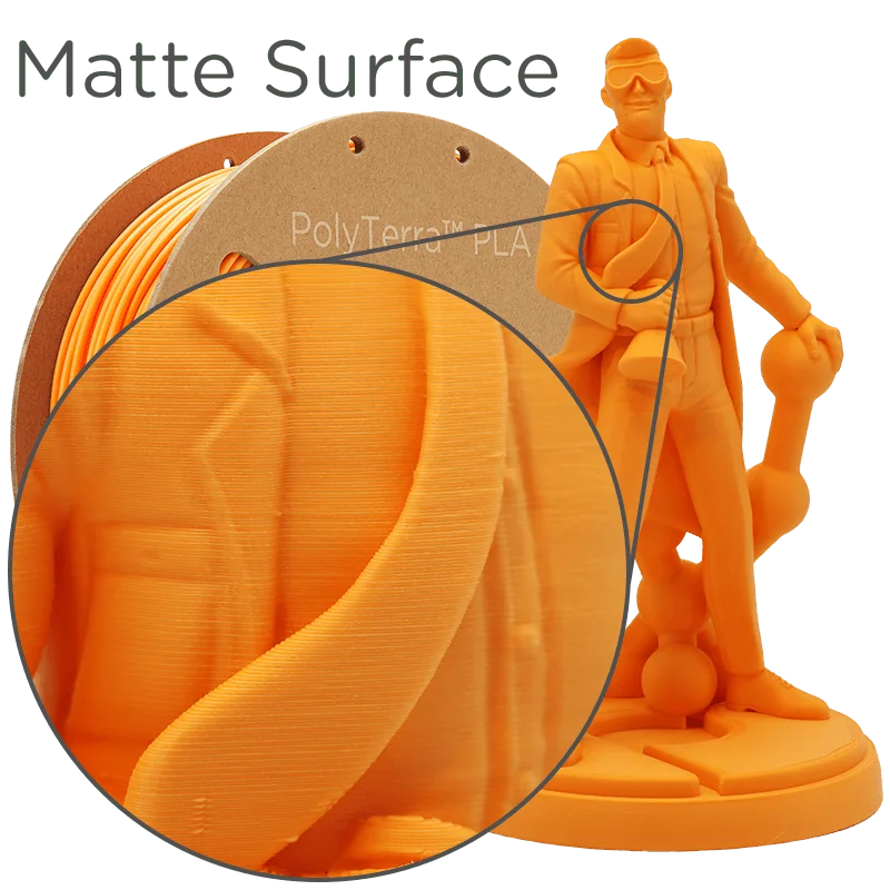 Având o gamă largă de temperaturi de imprimare de 190-230°C, PolyTerra™ . Se poate conecta și funcționa pe orice imprimantă 3D bazată pe extrudare. Finisajul de suprafață al pieselor imprimate 3D este deosebit de mat, ceea ce ascunde liniile de strat, chiar și atunci când se imprimă cu o înălțime mare a stratului.