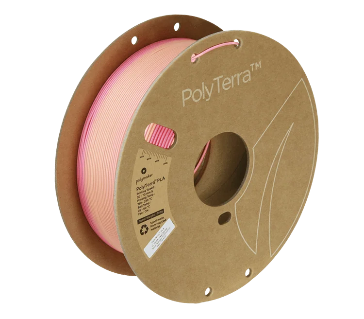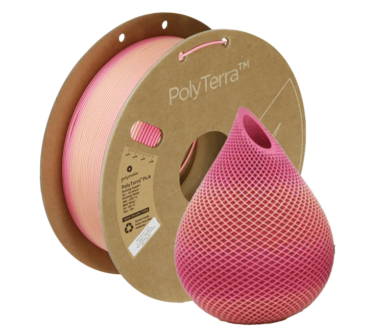 PolyTerra™ Gradient PLA este un filament de imprimare 3D de culoare tranzitorie, care trece de la o culoare la alta și de la o nuanță la alta pe măsură ce bobina rulează. Bazat pe formula PolyTerra™ Matte de la Polymakers, acest filament bioplastic este de origine naturală pentru a oferi ușurință în utilizare, calitate de imprimare, viteză și fiabilitate. Este alegerea perfectă pentru a crea cu ușurință modele colorate sau multicolore, cu o suprafață netedă mată care ascunde straturile.