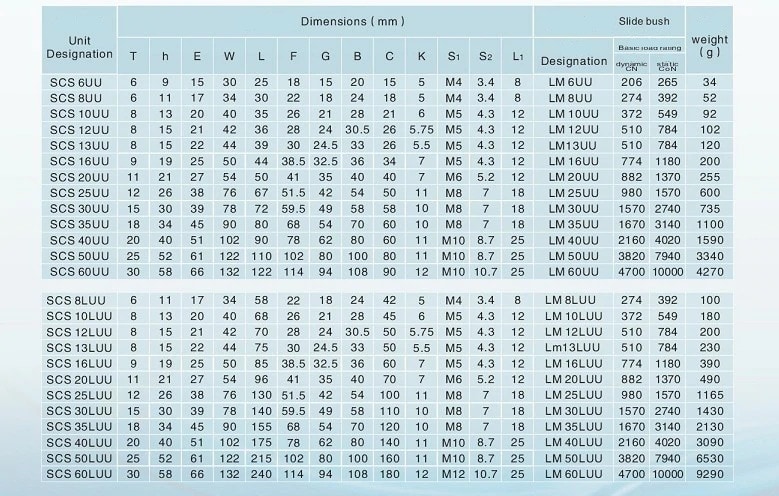 Rulment liniar cu bile tip cu prindere SCS10UU